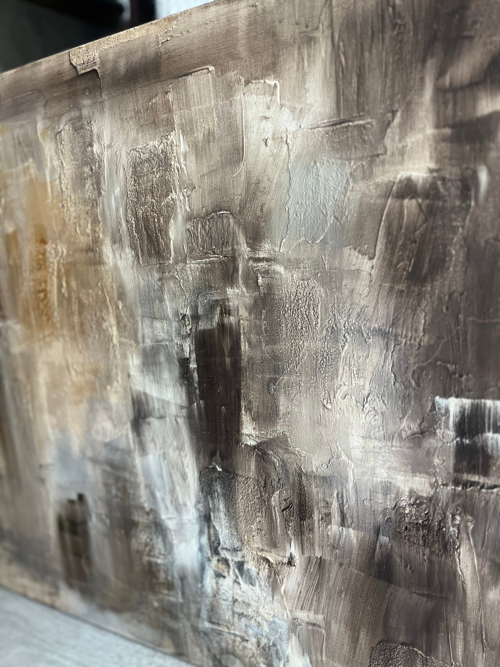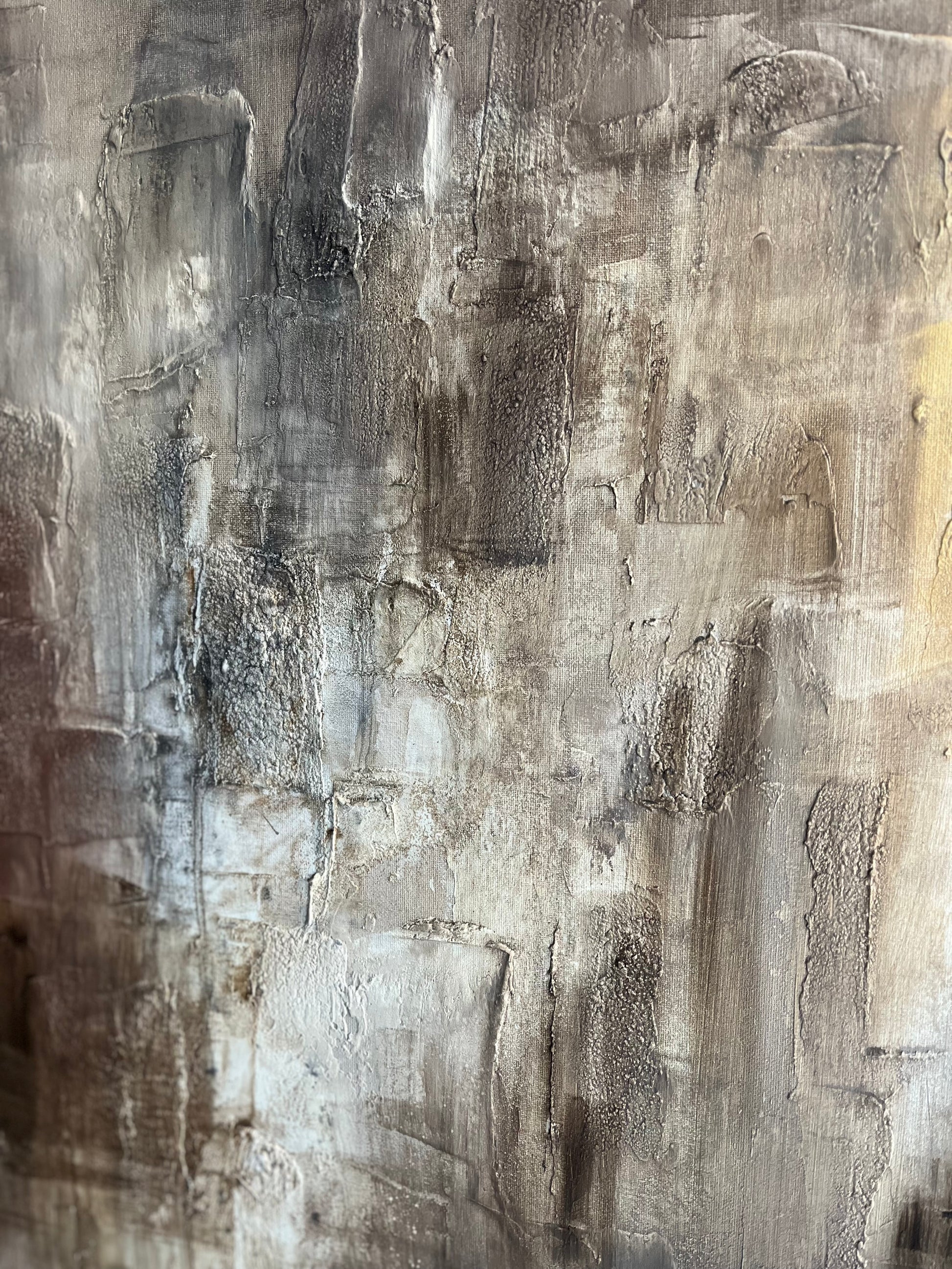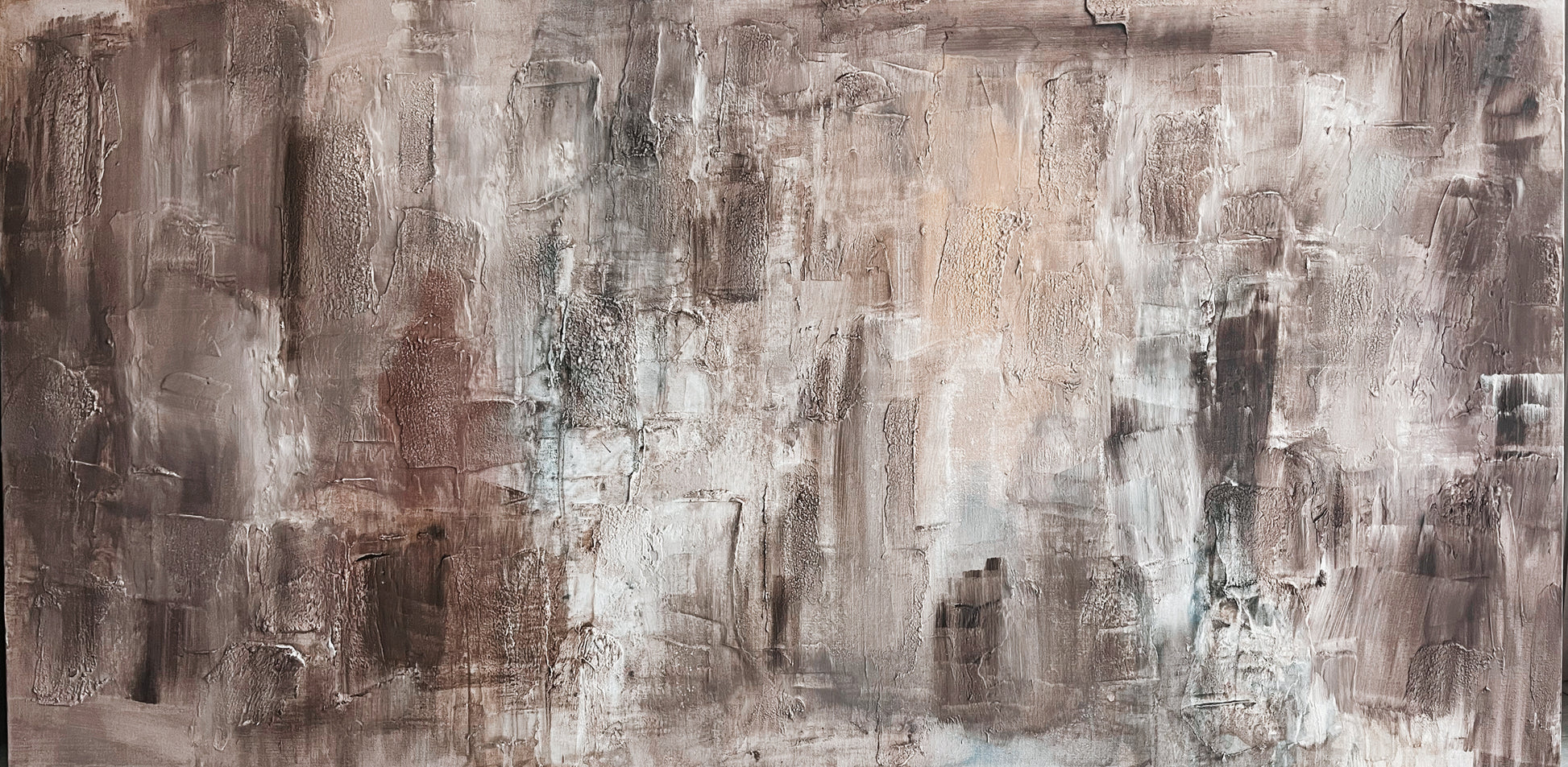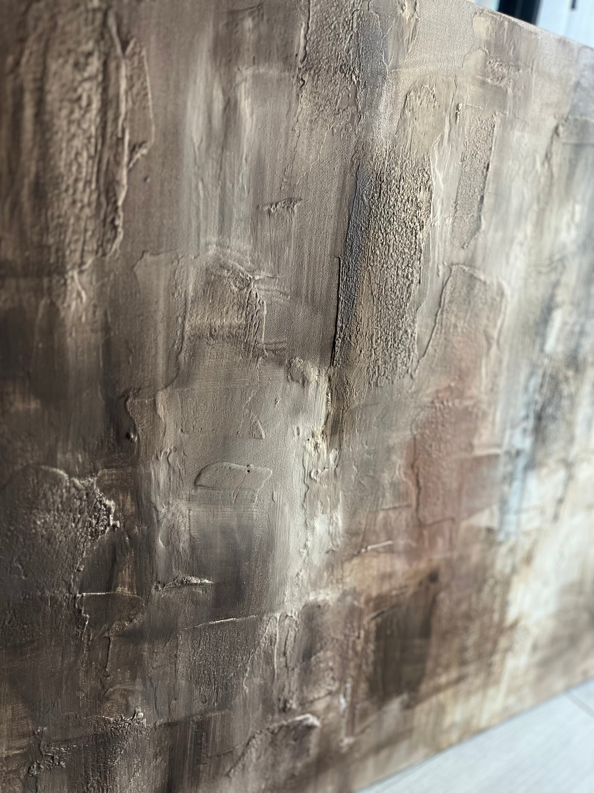 This piece was created on stretched canvas using acrylic paint, coffee, joint compound, and plaster. It has multiple layers of varnish cover to protect it so it can be hung in any room of your home including humid or steamy rooms without being damaged. It is signed and dated on the back and comes wired and ready to hang, unless told otherwise because you don’t know yet how you’d want it hung.